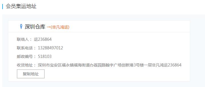 為了方便您的包裹快速收到,節省集運中途的時間。請在購買物品填寫倉庫地址的時候,填寫準確的聯絡人信息。獲取聯絡人信息,請登錄後台首頁即可獲取。1個漢字+6個數字組成,如下圖所示!